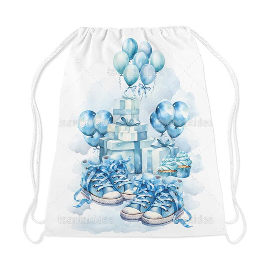 Υφασμάτινο σακιδιο πλατης εκτυπωμένο με θέμα Twins baby blue shoes