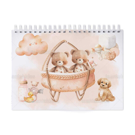 Παιδική μπομπονιέρα βάπτισης μπλοκ ζωγραφικής με διάσταση 21x29cm, εκτυπωμένο με θέμα Αρκουδάκια.