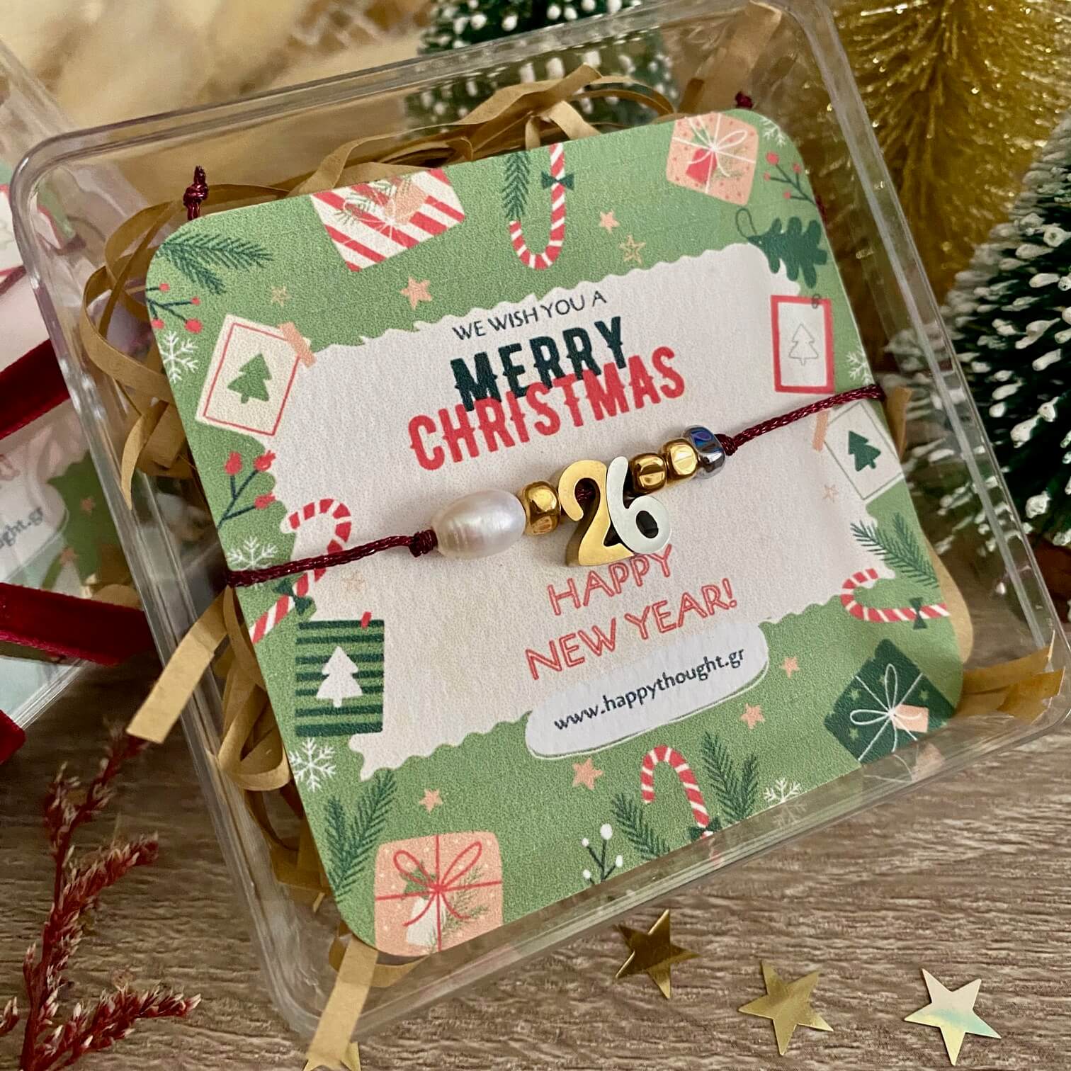 Αποστέλλεται σε κομψή συσκευασία δώρου, πάνω σε χριστουγεννιάτικο καρτελάκι και τοποθετημένο μέσα σε πλεξιγκλάς κουτί, έτοιμο να προσφερθεί ως ένα ξεχωριστό δώρο τύχης για τη νέα χρονιά.