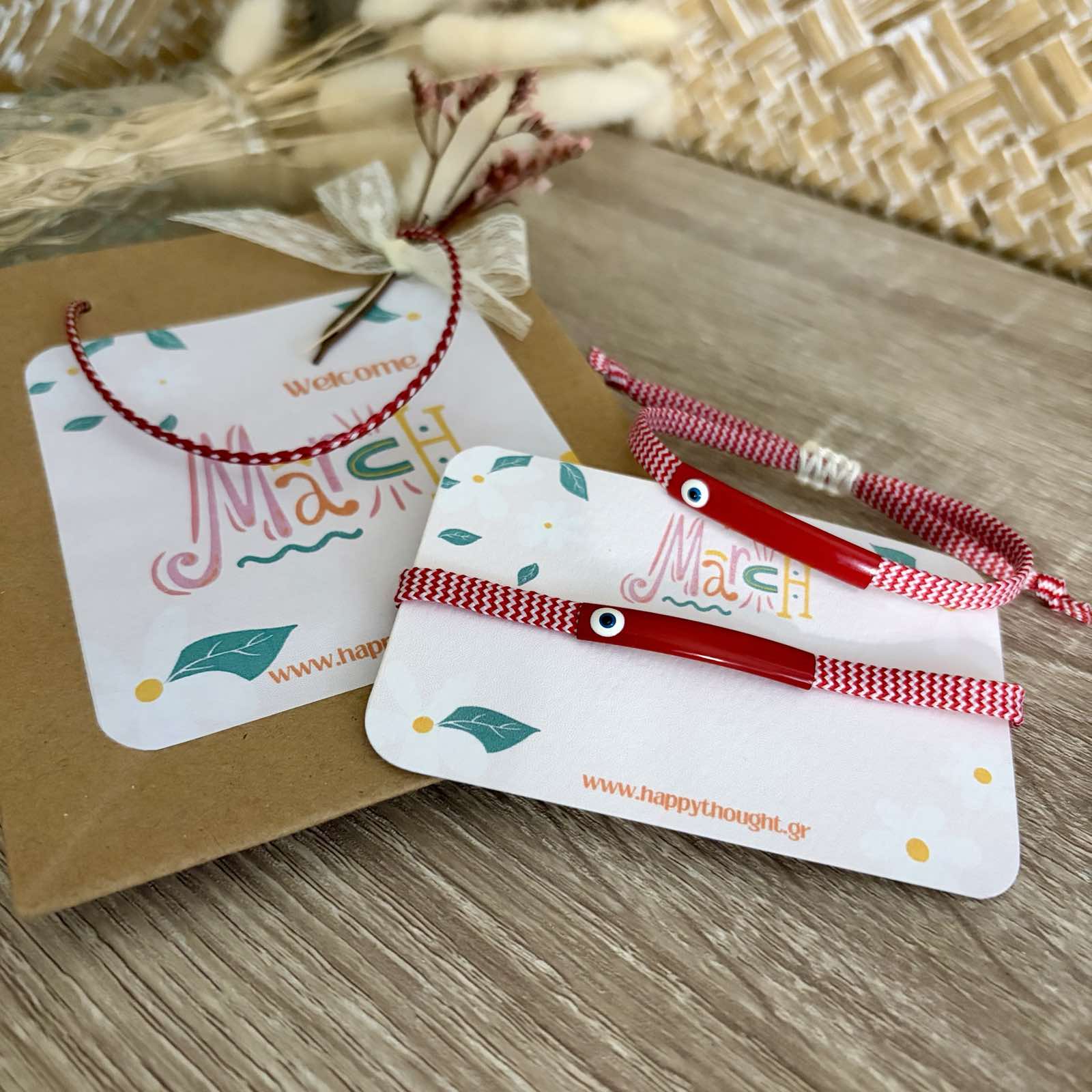Χειροποίητο μαρτάκι με κόκκινο μεταλλικό σωληνάκι με μάτι.