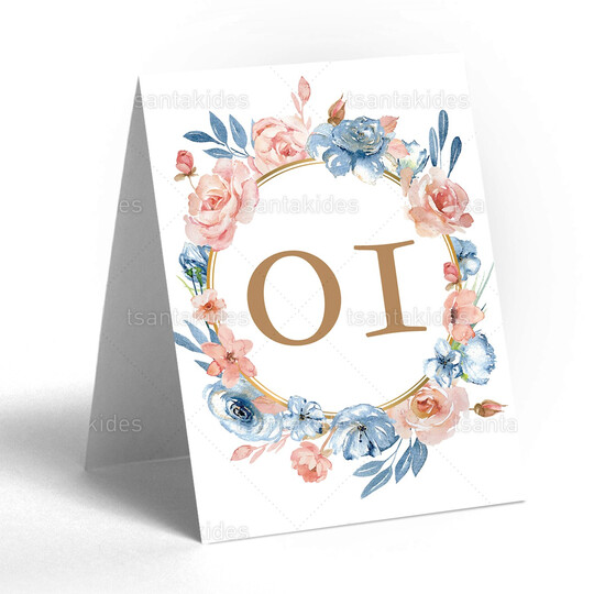 Δίπτυχη κάρτα αρίθμησης τραπεζιού γάμου εκτυπωμένη με θέμα floral σχεδιασμό