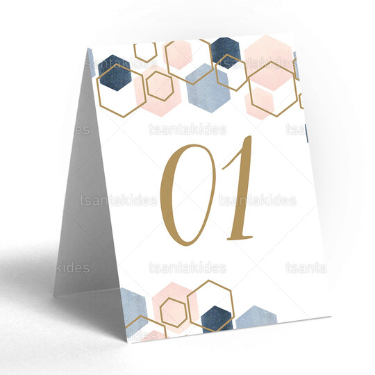 Δίπτυχη κάρτα αρίθμησης τραπεζιού γάμου εκτυπωμένη με θέμα γεωμετρικά σχέδια και pastel αποχρώσεις