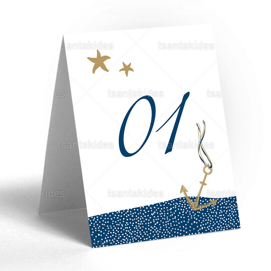 Δίπτυχη κάρτα αρίθμησης τραπεζιού γάμου εκτυπωμένη με θέμα ναυτικό