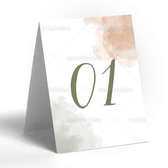 Δίπτυχη κάρτα αρίθμησης τραπεζιού γάμου εκτυπωμένη με θέμα pastel αποχρώσεις με watercolor