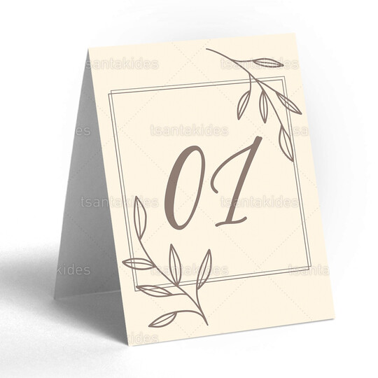 Δίπτυχη κάρτα αρίθμησης τραπεζιού γάμου εκτυπωμένη με θέμα λιτό σχεδιασμό και λογότυπο με μονογράμματα