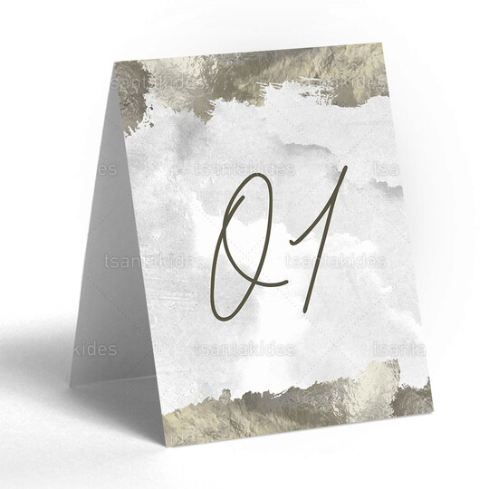 Δίπτυχη κάρτα αρίθμησης τραπεζιού γάμου εκτυπωμένη με θέμα watercolor στοιχεία