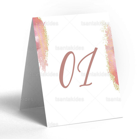 Δίπτυχη κάρτα αρίθμησης τραπεζιού γάμου εκτυπωμένη με θέμα Pink Brushes