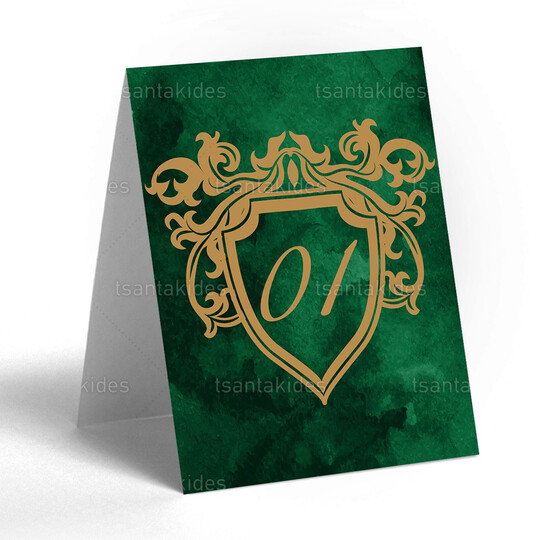 Δίπτυχη κάρτα αρίθμησης τραπεζιού γάμου εκτυπωμένη με θέμα Emerald Green and Gold
