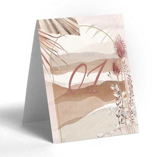 Δίπτυχη κάρτα αρίθμησης τραπεζιού γάμου εκτυπωμένη με θέμα Bohemian Window