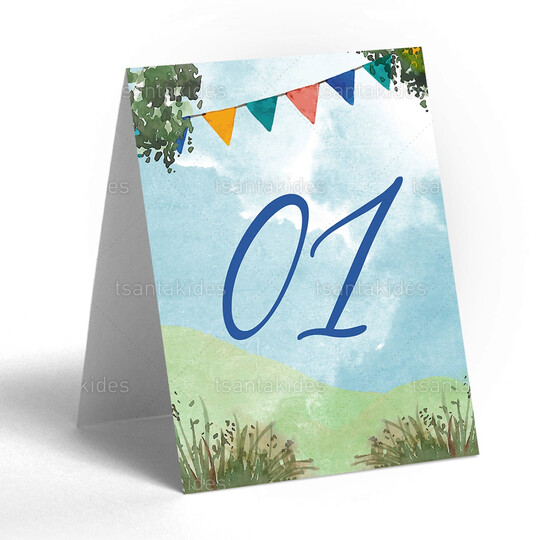 Δίπτυχη κάρτα αρίθμησης τραπεζιού γάμου εκτυπωμένη με θέμα Blue Car in Adventure