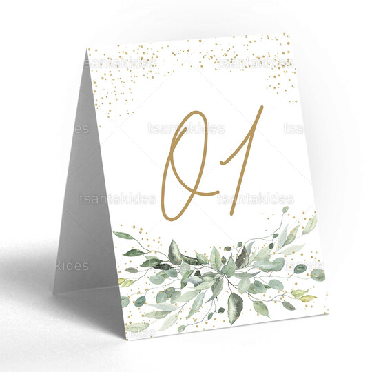 Δίπτυχη κάρτα αρίθμησης τραπεζιού γάμου εκτυπωμένη με θέμα Greenery