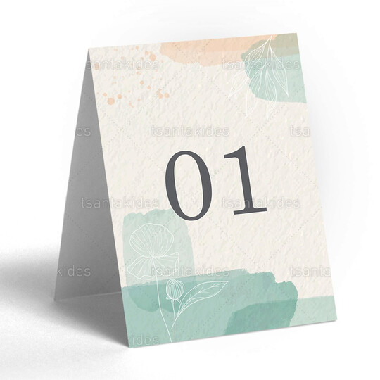 Δίπτυχη κάρτα αρίθμησης τραπεζιού γάμου εκτυπωμένη με θέμα minimal ύφος με pastel χρωματισμούς