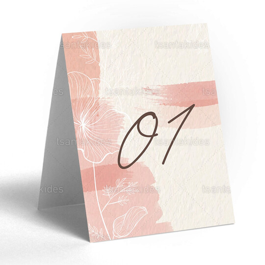 Δίπτυχη κάρτα αρίθμησης τραπεζιού γάμου εκτυπωμένη με θέμα minimal ύφος με pastel χρωματισμούς