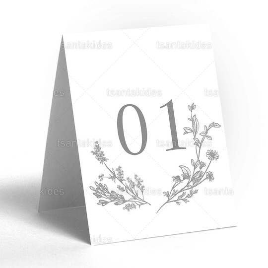 Δίπτυχη κάρτα αρίθμησης τραπεζιού γάμου εκτυπωμένη με θέμα Grey branches