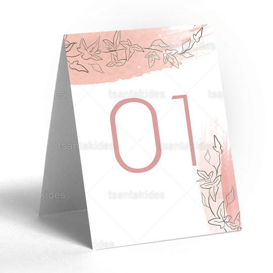 Δίπτυχη κάρτα αρίθμησης τραπεζιού γάμου εκτυπωμένη με θέμα Minimal branch