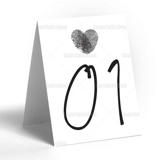 Δίπτυχη κάρτα αρίθμησης τραπεζιού γάμου εκτυπωμένη με θέμα Heart by finger tips