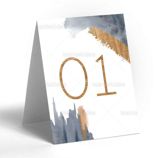 Δίπτυχη κάρτα αρίθμησης τραπεζιού γάμου εκτυπωμένη με θέμα Watercolor brush strokes