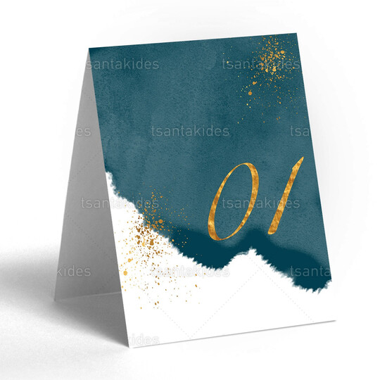 Δίπτυχη κάρτα αρίθμησης τραπεζιού γάμου εκτυπωμένη με θέμα Ocean blue wave watercolor