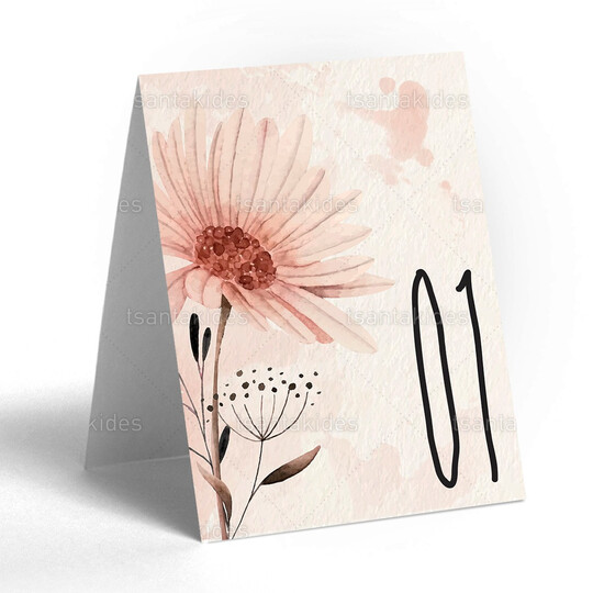 Δίπτυχη κάρτα αρίθμησης τραπεζιού γάμου εκτυπωμένη με θέμα Pastel floral