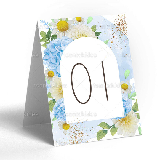 Δίπτυχη κάρτα αρίθμησης τραπεζιού γάμου εκτυπωμένη με θέμα Floral daisies