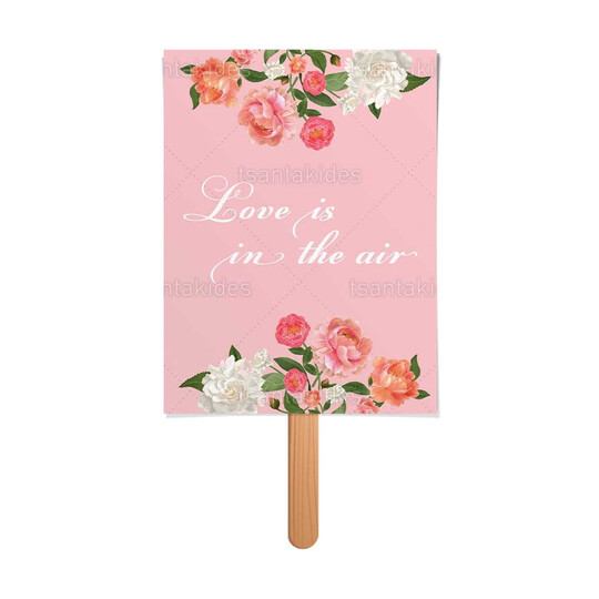 Χάρτινη Βεντάλια εκτυπωμένη με λογότυπο LOVE με τριαντάφυλλα και ροζ backround