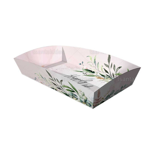 Κουτί πιατάκι εκτυπωμένο με θέμα greenery και στοιχεία από λουλούδια και ευκάλυπτο