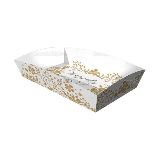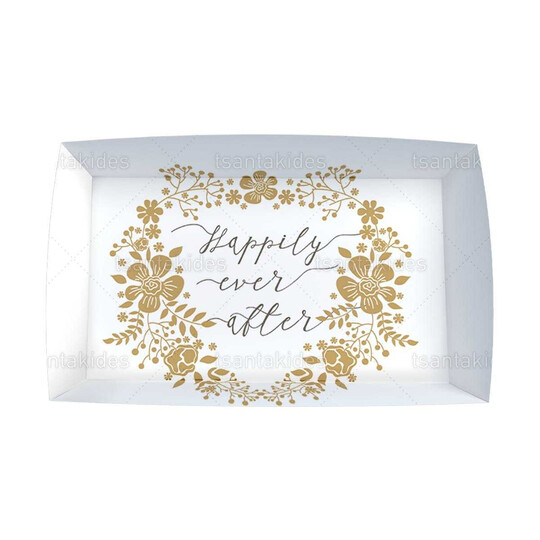 Κουτί πιατάκι εκτυπωμένο με θέμα λογότυπο μονογράμματα και floral χρυσό στεφάνι