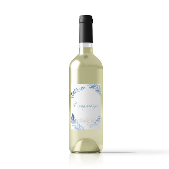 Αυτοκόλλητη ετικέτα κρασιού για τη δεξίωση του γάμου εκτυπωμένη με κλαδιά σε σιελ χρωματισμούς