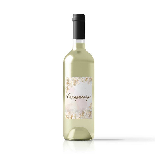 Αυτοκόλλητη ετικέτα κρασιού για τη δεξίωση του γάμου εκτυπωμένη με χρυσά γραμμικά τριαντάφυλλα