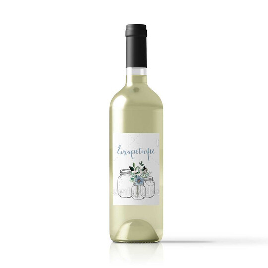 Αυτοκόλλητη ετικέτα κρασιού για τη δεξίωση του γάμου εκτυπωμένη με λουλούδια σε βαζάκια