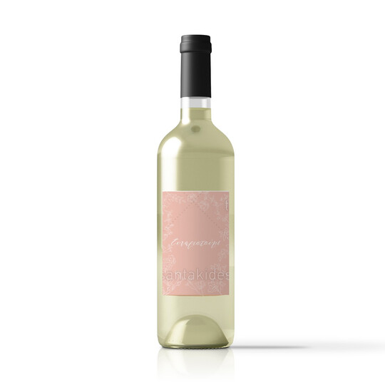 Αυτοκόλλητη ετικέτα κρασιού για τη δεξίωση του γάμου εκτυπωμένη με γραμμικά λουλούδια σε σάπιο μήλο background