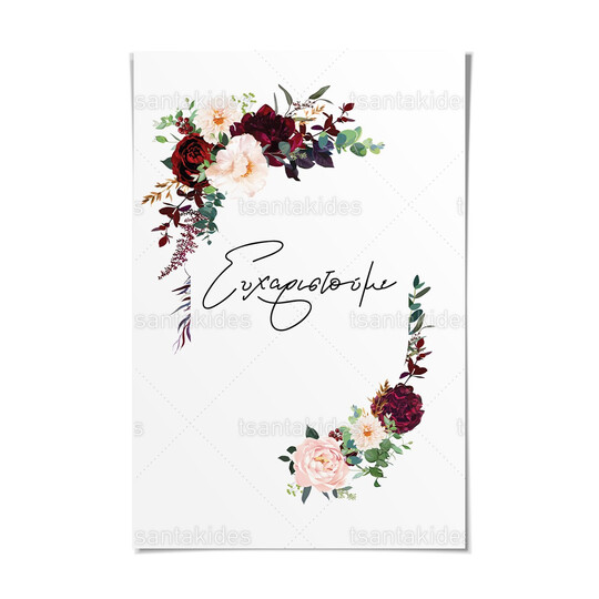 Αυτοκόλλητη ετικέτα κρασιού για τη δεξίωση του γάμου εκτυπωμένη με floral σχεδιασμό σε burgundy και ροζ pastel χρωματισμούς