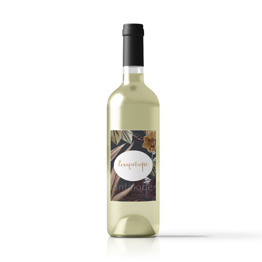 Αυτοκόλλητη ετικέτα κρασιού για τη δεξίωση του γάμου εκτυπωμένη με bohemian ύφος και dried palm φύλλα