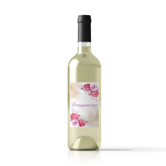 Αυτοκόλλητη ετικέτα κρασιού για τη δεξίωση του γάμου εκτυπωμένη με floral σχεδιασμό και χρυσό οβάλ στεφάνι