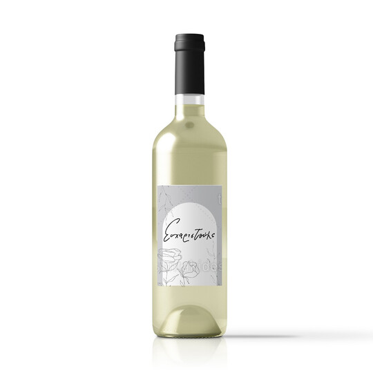 Αυτοκόλλητη ετικέτα κρασιού για τη δεξίωση του γάμου εκτυπωμένη με θέμα Minimal grey silver flowers
