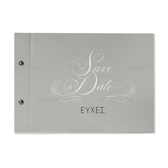 Βιβλίο ευχών εκτυπωμένο σε save the date σε γκρι αποχρώσεις