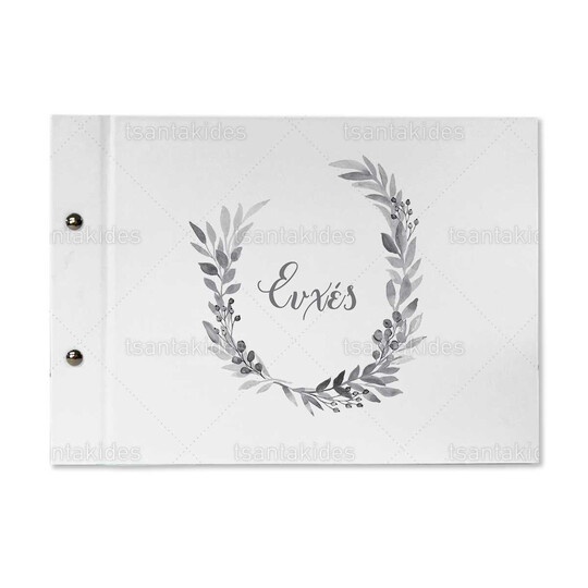 Βιβλίο ευχών εκτυπωμένο με στεφάνι σε γκρι αποχρώσεις