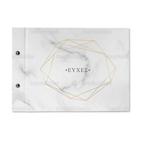Βιβλίο ευχών εκτυπωμένο με γραμμικό σχεδιασμό και background σε στυλ μάρμαρο