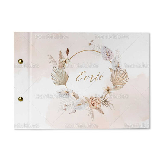 Βιβλίο ευχών εκτυπωμένο με κυκλικό στεφανάκι από pampas