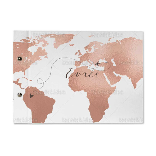 Βιβλίο ευχών εκτυπωμένο travel, save the date και rose gold χρωματισμούς