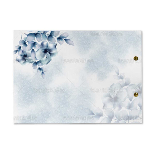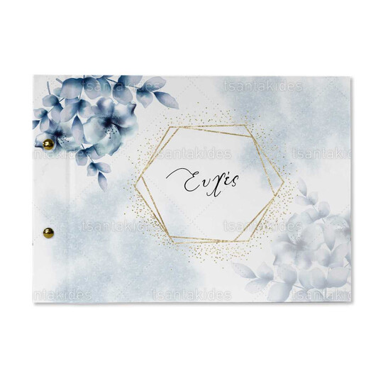 Βιβλίο ευχών εκτυπωμένο με dusty blue λουλούδια και χρυσές λεπτομέρειες