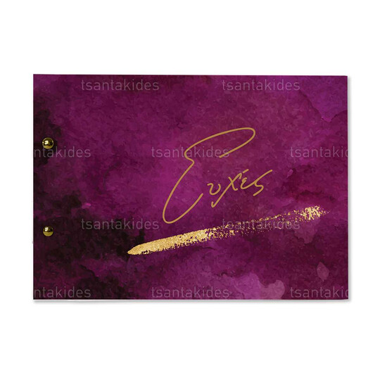 - Υπάρχει η δυνατότητα εκτύπωσης των ονομάτων του ζευγαριού και της ημερομηνίας του γάμου στο εξώφυλλο. Παρακαλούμε σημειώστε στις παρατηρήσεις τι θέλετε να αναγράφεται.