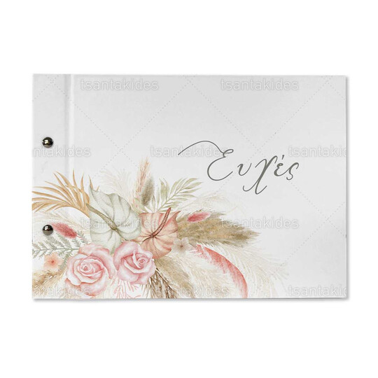Βιβλίο ευχών εκτυπωμένο με bohemian ύφος και pampas λουλούδια