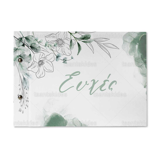 Βιβλίο ευχών εκτυπωμένο με watercolor σε αποχρώσεις του ευκάλυπτου