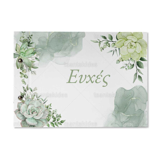 Βιβλίο ευχών εκτυπωμένο με floral σύνθεση από παχύφυτα και ευκάλυπτο