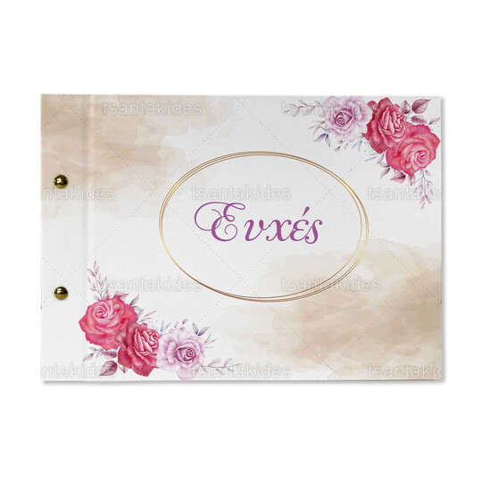 Βιβλίο ευχών εκτυπωμένο με floral σχεδιασμό και χρυσό οβάλ στεφάνι