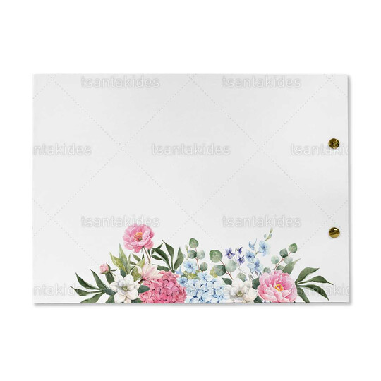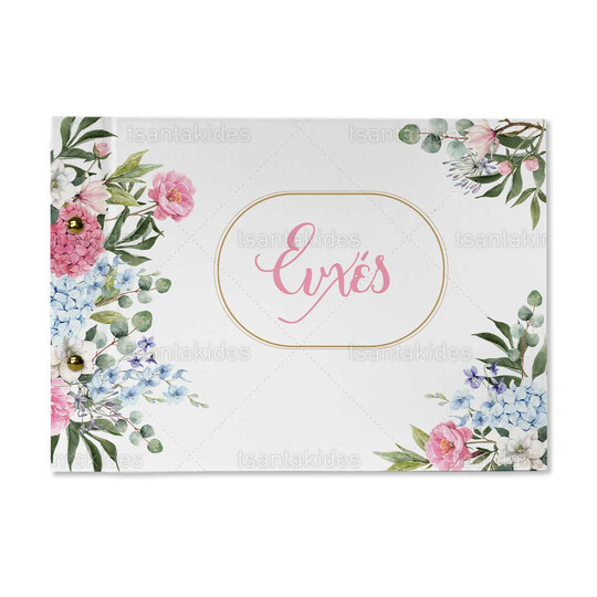 Βιβλίο ευχών εκτυπωμένο με floral σύνθεση από γαλάζιες και ροζ ορτανσίες