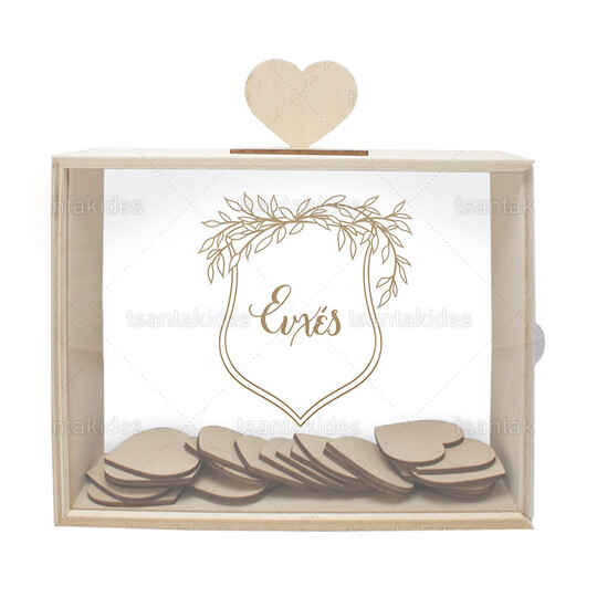 Ξύλινο κουτί ευχών γάμου εκτυπωμένο με λιτό σχεδιασμό και λογότυπο
