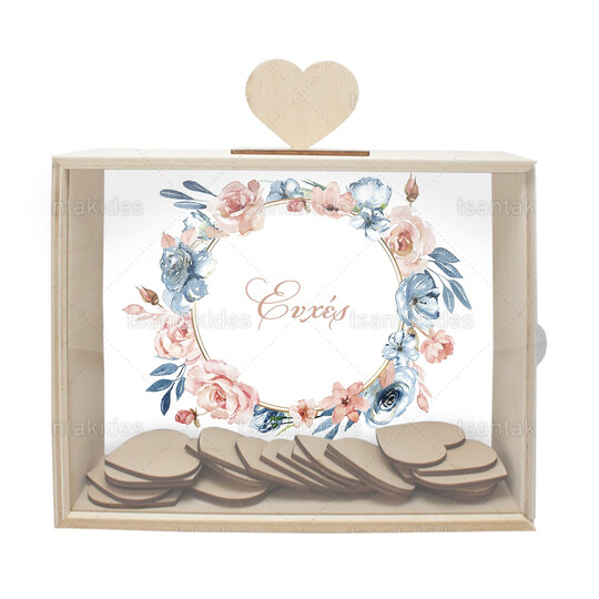 Ξύλινο κουτί ευχών γάμου εκτυπωμένο με floral σχεδιασμό