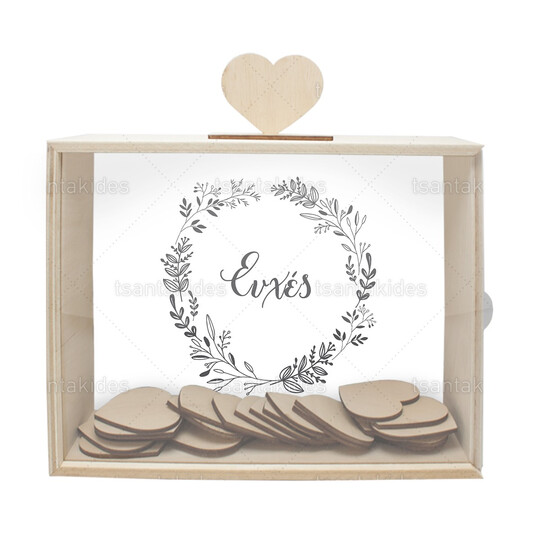 Ξύλινο κουτί ευχών γάμου εκτυπωμένο με λογότυπο σε στεφανάκι